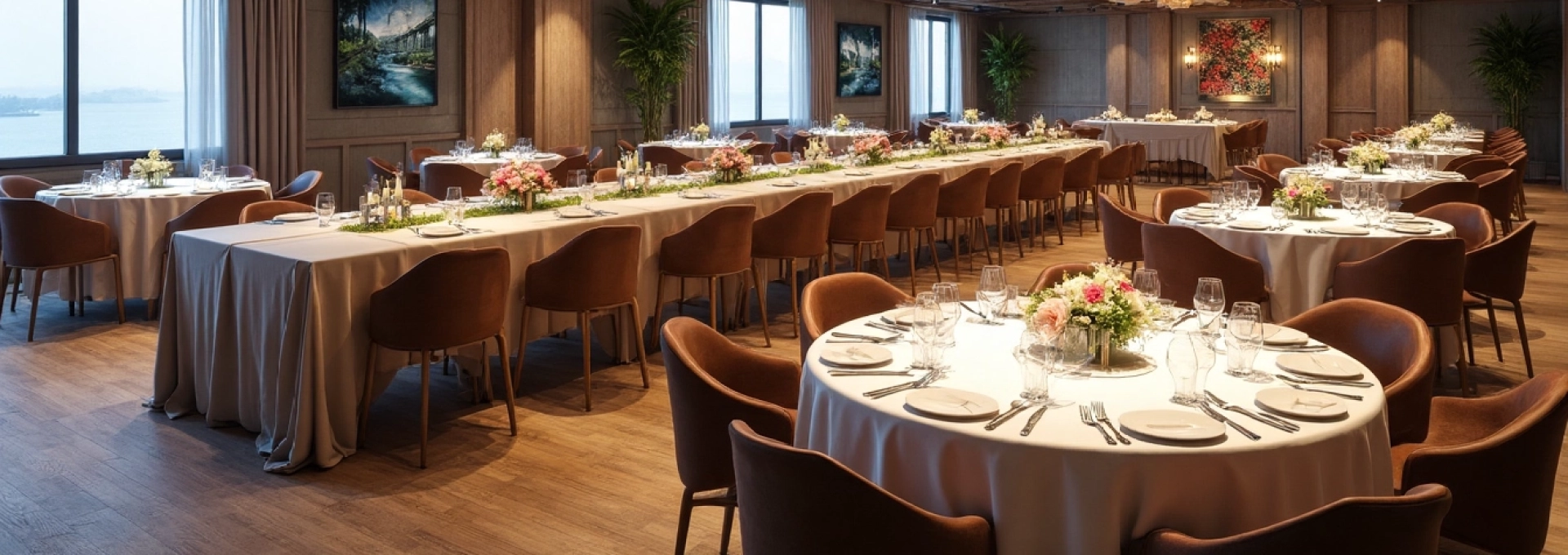 Vous pouvez varier la taille de ces grappes en fonction de vos objectifs. Des groupes de 2 à 3 tables encouragent des conversations plus intimes, idéales pour le networking professionnel. Des configurations plus larges de 4 à 5 tables peuvent convenir à des présentations informelles ou des démonstrations de produits.